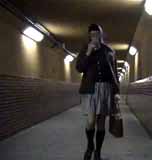 白いトレンチコートの時にも来たこの地下通路に今日もやってきました。びくびくしながらカメラの三脚を開きます。