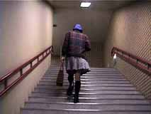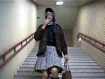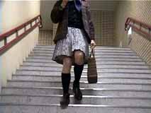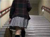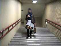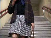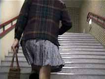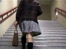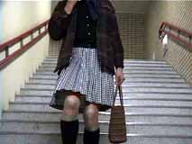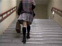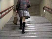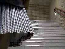 階段を歩く時は、スカートはこんな風になるのね。裾から10センチくらいまでは確実に見えちゃうのね...