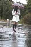 ストッキングに包まれているせいか、雨の冷たさを感じることはありませんでした。雨滴の感覚が擽ったくて新鮮でした。