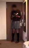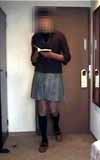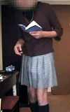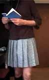プリーツミニスカート姿でまたフランス文庫のSM小説を読んでいます。私の好きな香山洋一さんの本。