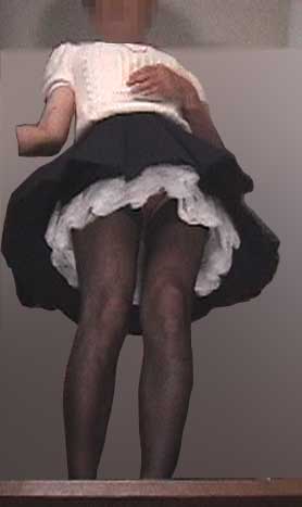 白いメイドペチコートが丸見えね...この下には、薄いピンクのミニスリップ。