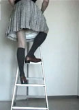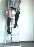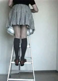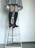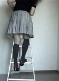 純子のからだがスカートの中でつらくなりました...でも、上らないと...純子は意を決して脚立を両手で掴み、片脚を...