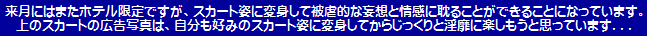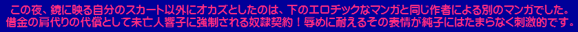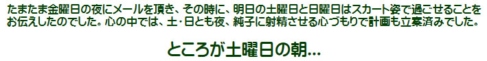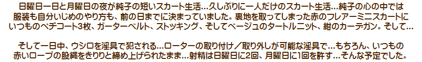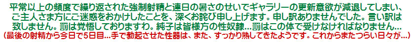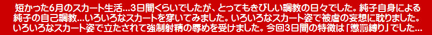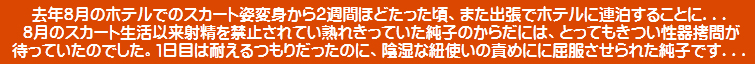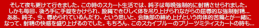 強制射精が続いたせいか暑さのせいか性欲が大幅に減退 → スカート着用意欲喪失。 射精不能! |