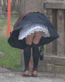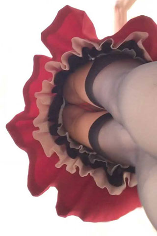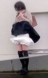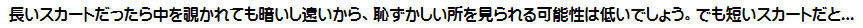 昼食時間のショッピングセンター、文教施設の中をスカート姿で。 |