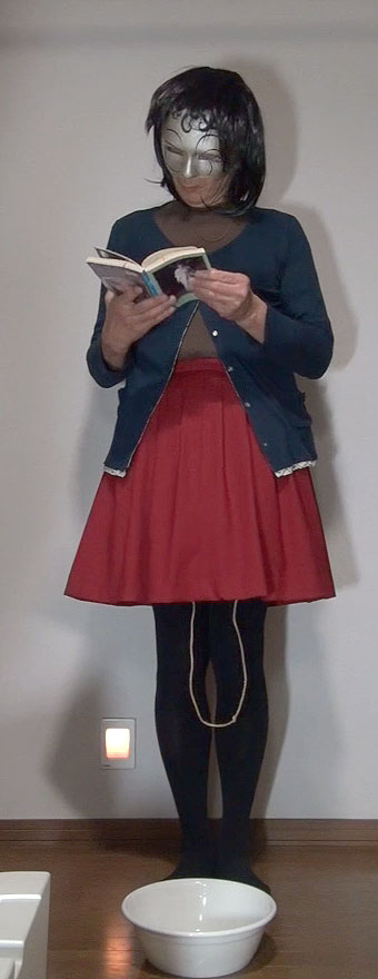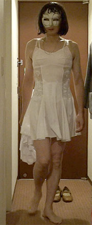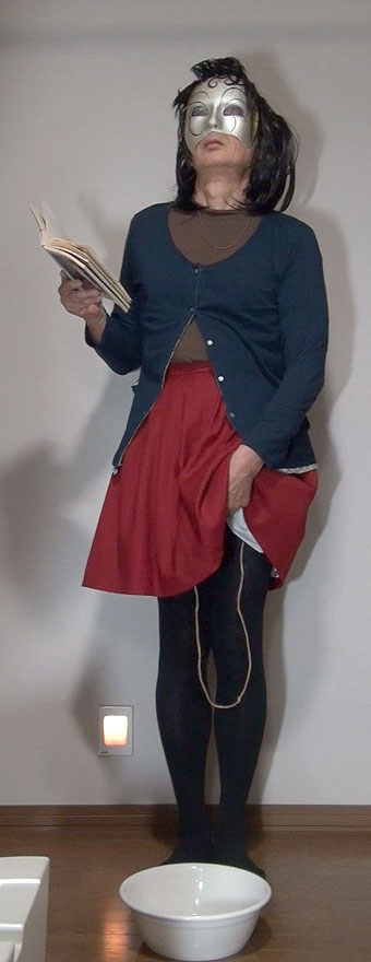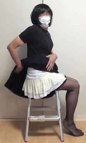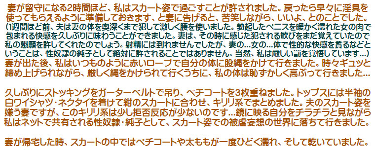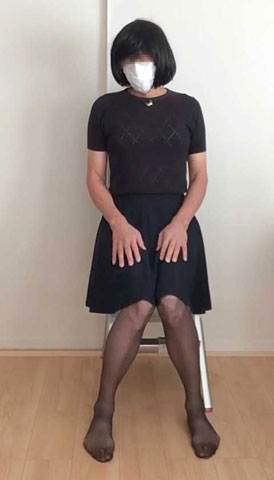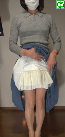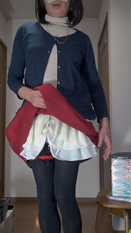 下半身はペチコート40cm丈黒2段ギャザー)のみ、パンティを禁止して就寝。翌朝勃起して目覚め。軽い自慰と撮影。  |