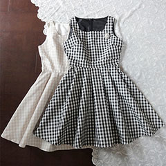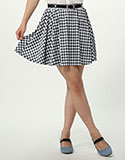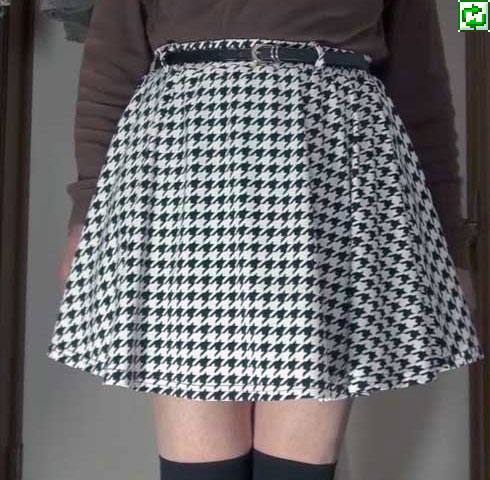 ギンガムチェックプリーツミニ → (ウエスト) 千鳥柄フレアミニ |