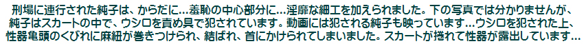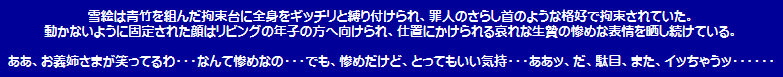 拷問(太もも・尻スパンキング40回。前後股縄吊り拘束) |