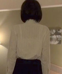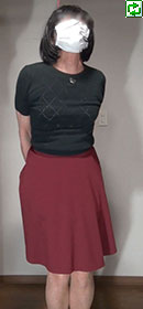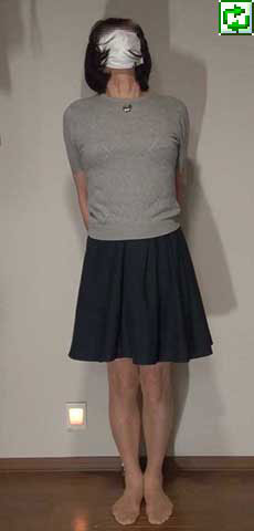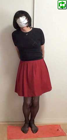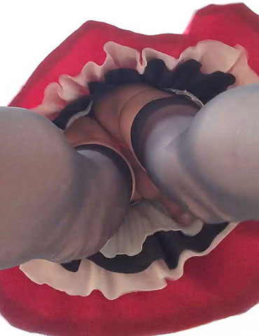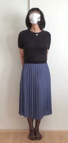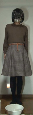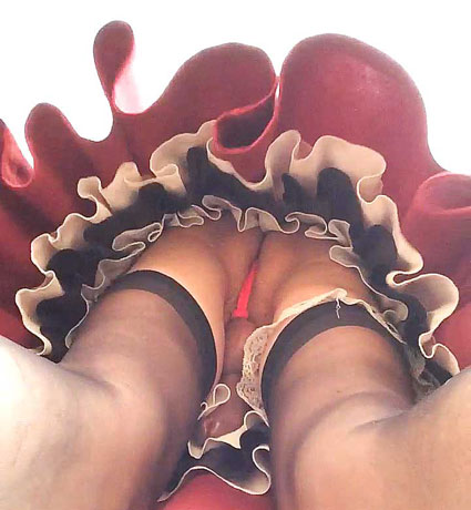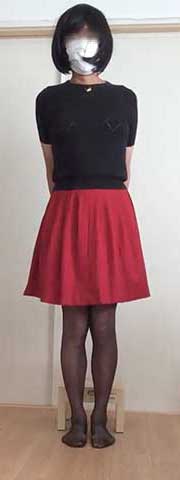 | 下半身はペチコート40cm丈黒2段ギャザー)のみ、パンティを禁止して就寝。翌朝、朝食前に撮影。 |