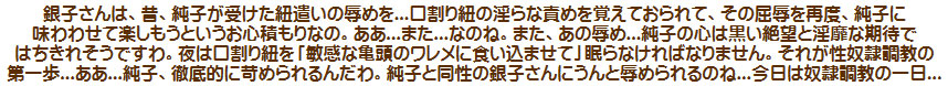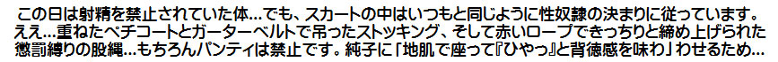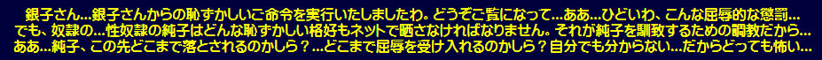 股縄からの垂れ鎖+懲罰バンド+錘の辱め+風の意地悪 |