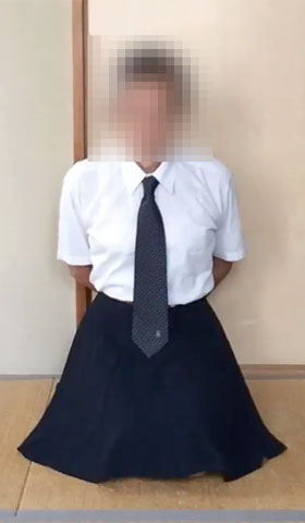 全裸拷問(正座+手錠+鈴つき乳首責め具+性器淫具+リボン)+強制射精 |