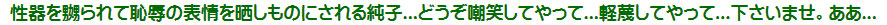 上の画像、性奴隷・中林純子は、どんな厳しいお仕置きにも...どんな辱めにも...耐え抜いて、めぐみさまに服従することを誓っています...
