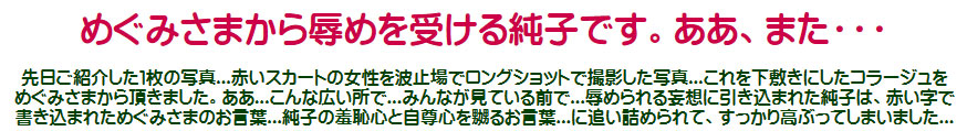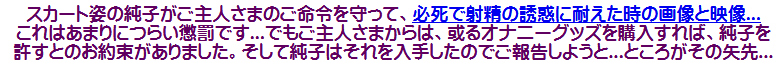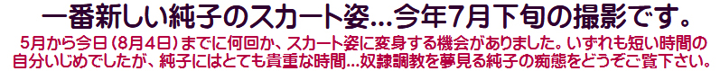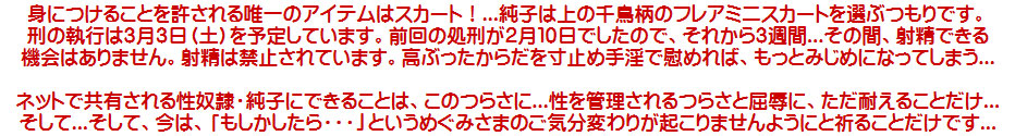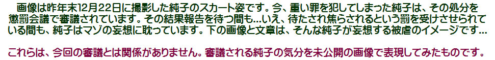 このスカート姿の純子は、外からは見えない淫らで倒錯した責めを受けています...その内容は純子の口からお聞き下さいませ。ああ...そんなこと...