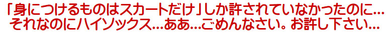 でも...ええ、はい。「身につけるものはスカートだけ」なのにハイソックス...ごめんなさい。お許し下さい...