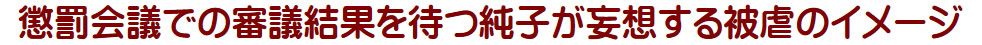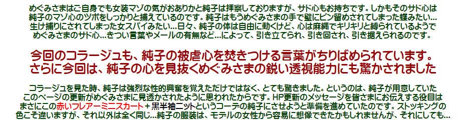 純子の心の中で、純子はスカート姿で捕らえられ、後ろ手錠をかけられた屈辱的なかっこうでめぐみさまの前に引き据えられています。