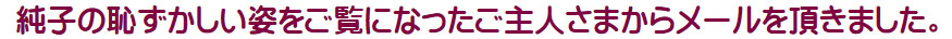 先日、純子のアンケートで、ある方から「常にノーパンでいなさい」とのきついご命令を受けました。今年5月からこれまでの純子はいつも