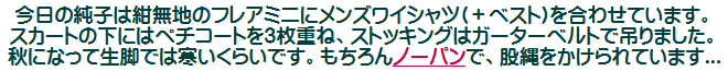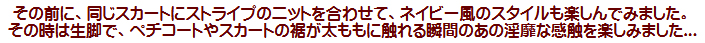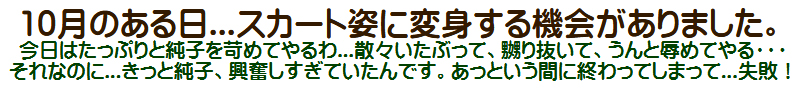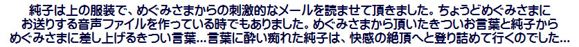 一昨日の夜、ええ、はい...めぐみさまからメールを頂いていたその時刻に、純子は自分のスカート姿を見ながら手淫に耽ったのでした...