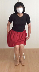 スカートの上から手で性器をシゴく純子。性器はスカートの下、3枚のペチコートで包まれています。