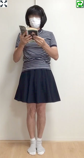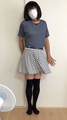 別ページにまとめておきました。ウィッグもつけずトップスは男物、下半身のみペチコートや下着・レッグウエアも含めて完全なスカート姿の女装夫です。