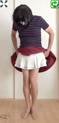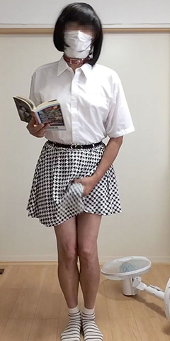当然パンティは禁止されています。この日、純子はこの格好で音声ファイルを作りました。男のクセして。スカート!
