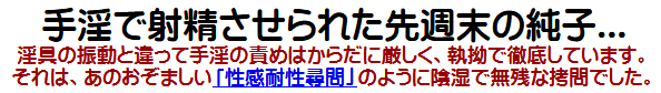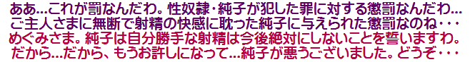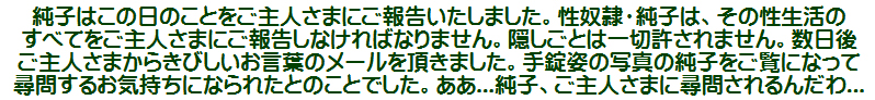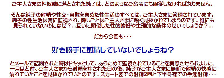 ごめんなさい、ご主人さま。自分からの罰として、純子には、ご覧の責めを与えながら射精させました。