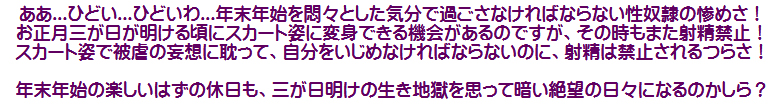 2015年暮れ〜2017年秋の妻の前でのスカート生活については、妻の性奴隷としての生活のほか、スカート姿での家事奴隷としての生活も合わせて
