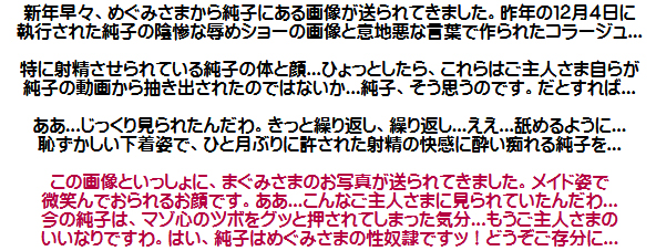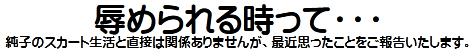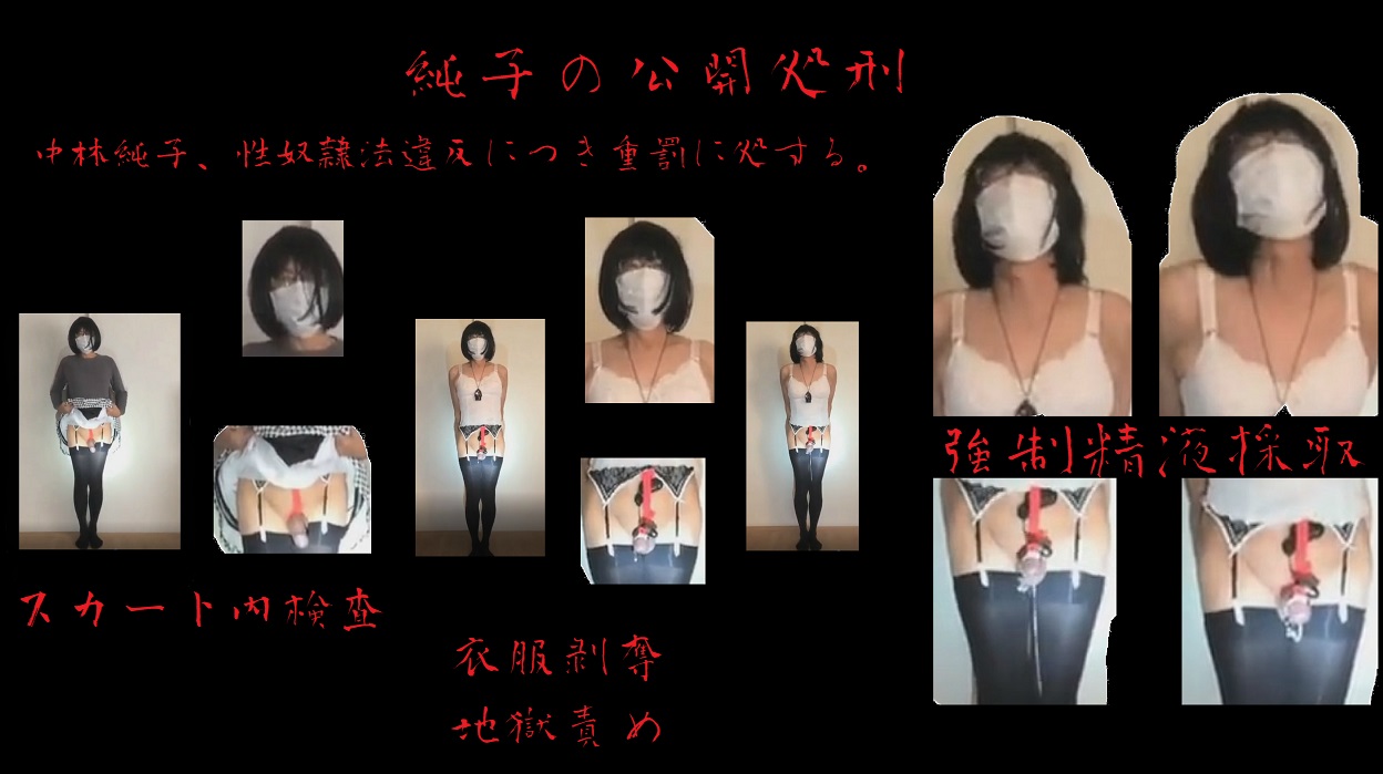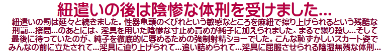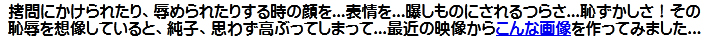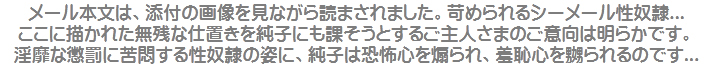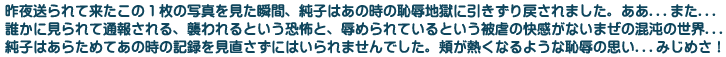 恥ずかしい純子の写真とともに、意地悪な言葉が並んでいます。「スカート内検査」!...「衣服剥奪」!...ああ...堪忍... |