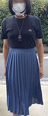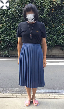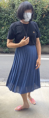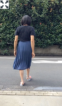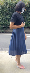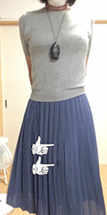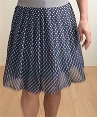 薄地のスカートの実効丈は裏地で決まるようです。このスカートの場合、表地はソフトプリーツでよく揺れ動きますが、裏地はかなりタイトです...