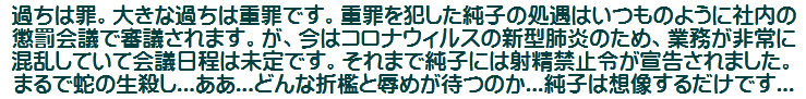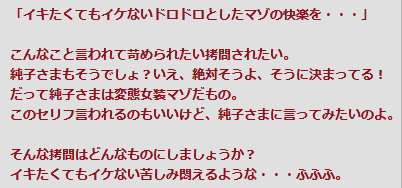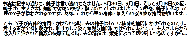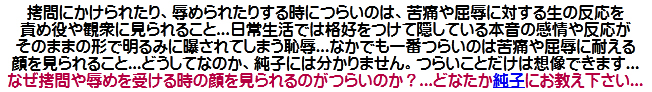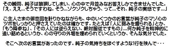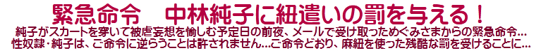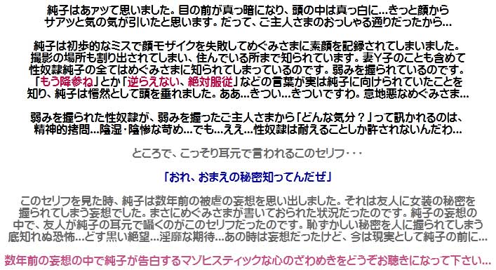 .ああ...純子は思い違いをしておりました。ごめんなさい、ご主人さま...どうぞお許し下さいませ。純子は謹んで罰をお受けいたしますわ...