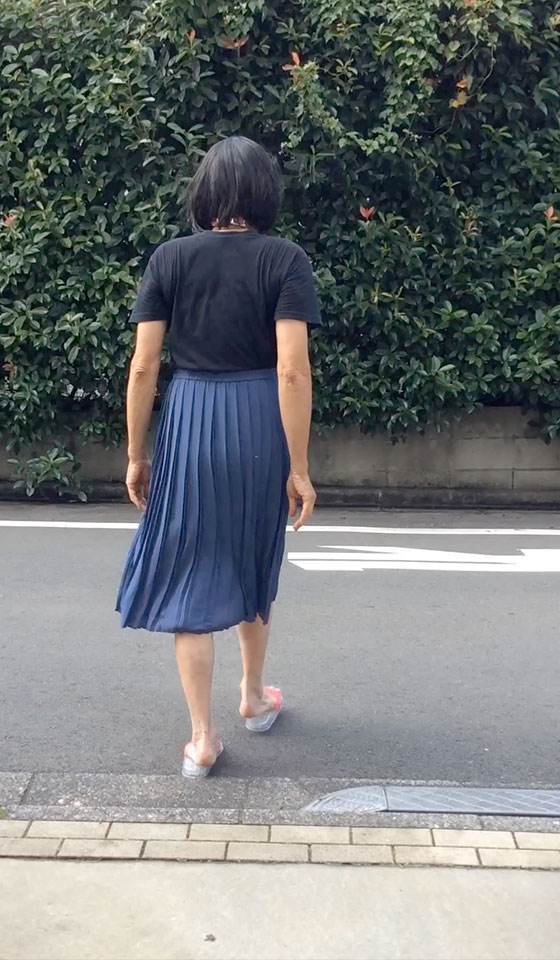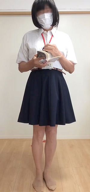 男モードでいる時、ズボン姿の純子は大股で歩くし、立つ時は足先を開き気味にするか”休み”の姿勢を取ります。足先を揃えて立つことなんて絶対にありえません。
