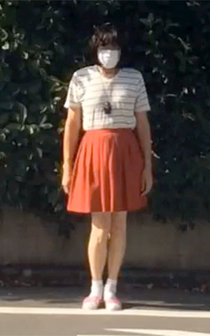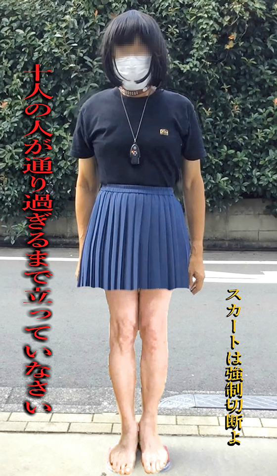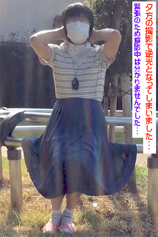 めぐみさまのご命令で純子のパンティは没収されています。ノーパンで生脚の純子...お外の空気の中でスカートの感触を満喫!