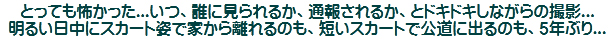 2020年は数年ぶりにスカート姿で外に出て撮影する機会がありました(ご主人さまからの厳しい命令で外に引きずり出されたのでした)。ああ...この風の感触!