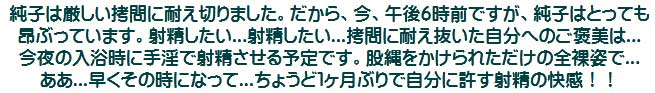 長々と続いた寸止め責めから解放される時が着ました。ああ...もうダメ...耐えられない...純子、恥をかかされるのね。辱めなのね...