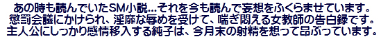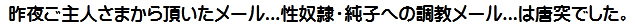 帰宅してホッと一息ついた時、昨夜のめぐみさまのメールに書かれていた恥辱のご経験を思い出しました。すると突然...ええ、