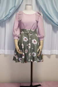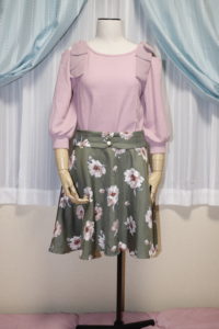 軽やかなスカート...動くと表地がフワッと翻ったり流れたりして裏地がはっきりと透けて見えます。外を歩けばきっと風に揺れて・・・