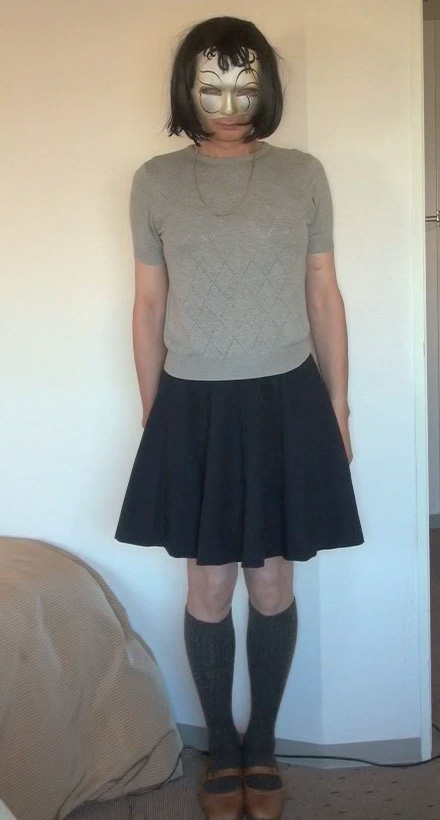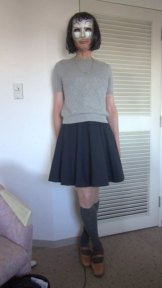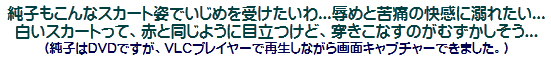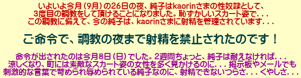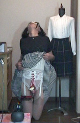 その後は、またこのスカート姿になって、スカート姿のkaorinさまに辱められるのです。ああ...責め折檻と辱めの調教を待たされる純子...