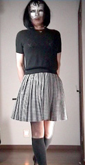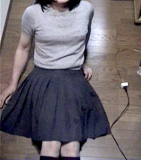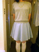 ご指定のスカートは下の写真のフレアーミニ...夏の間にウエストが急増(!)したみたいなので、穿けるかどうか心配です...