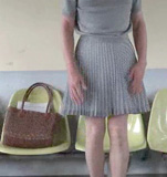 昨晩とちがって、いかにも朝らしいカチッとしたプリーツミニスカート...夜の調教を想像しながら、朝から被虐の情感に浸りきって、スカートの中を濡らす純子です...