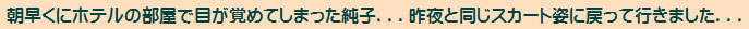 | このフレアーミニスカートでホテルに泊まるのもはじめてですし、ましてこのスカート姿で男性とお会いするなんて...生まれてはじめての経験! |