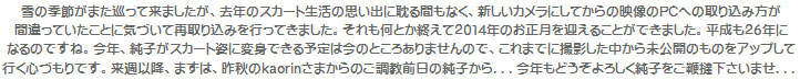 今の純子を撮影しましたが、ケーブルを忘れて来て、今はアップできません。下の謹賀新年の写真と同じスカート姿です。恥ずかしい下着も...