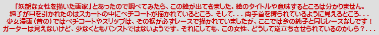 特に後ろ手錠で足を拡げて立っておられるラストがいいと思います。この様子をスカートの下から覗いてみたい・・・」
