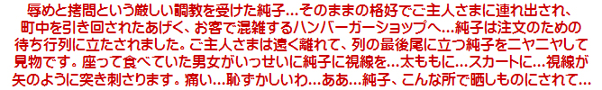 そこからさらに、どのような経験が純子を待っているのか...どんな扱いをされるのか...どのような仕打ちを受けるのか...少なくともお口を