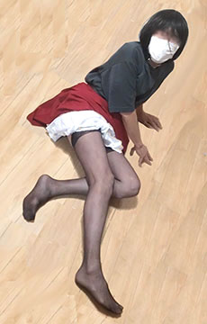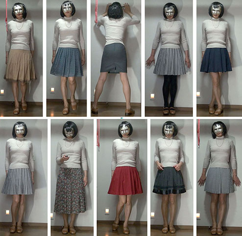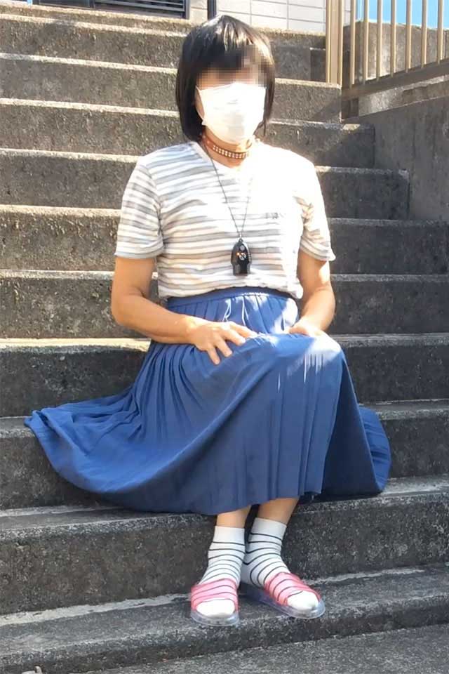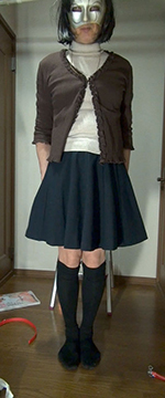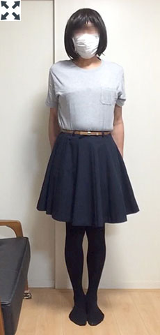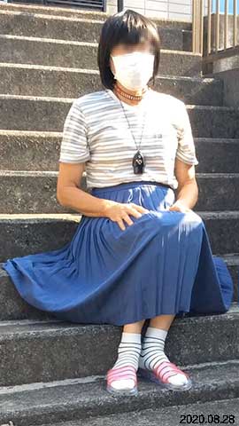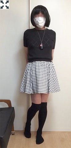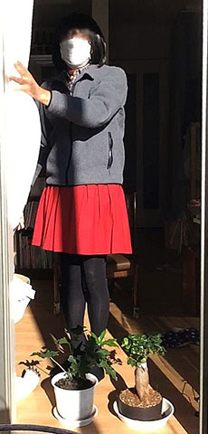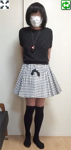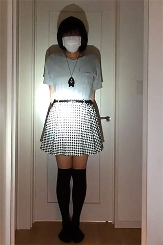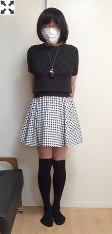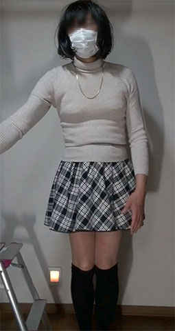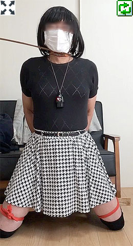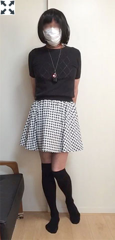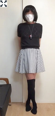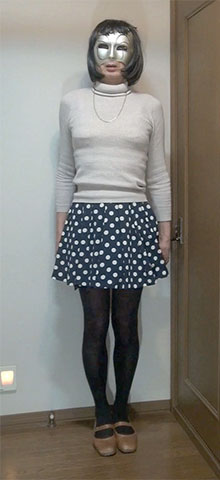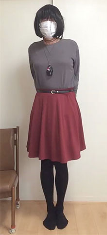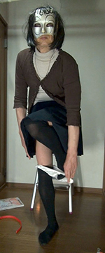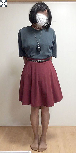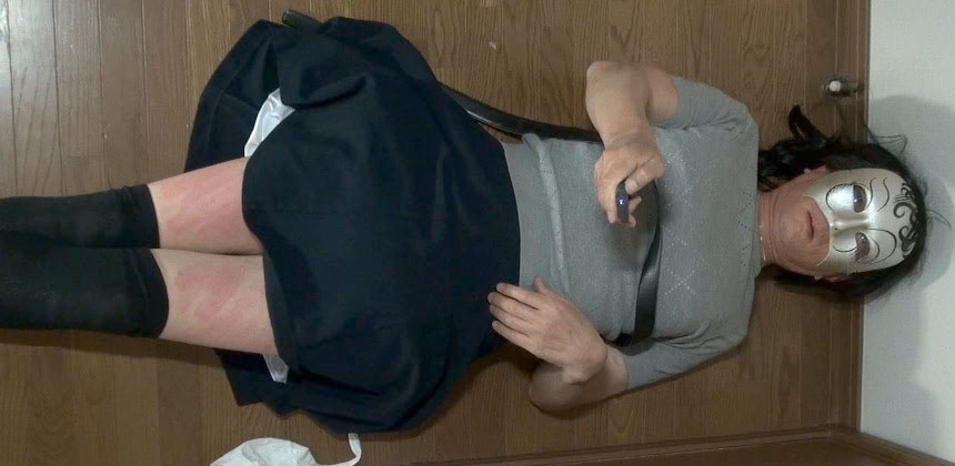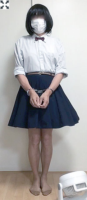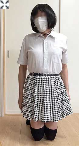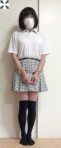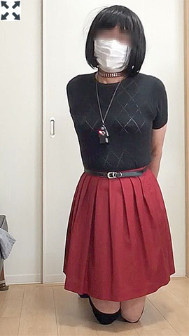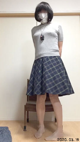 無理やりスカートを替えさせられた純子はペチコートも替えさせられました。そして外出なので仮面の代わりにマスク着用で素顔を隠すことに...