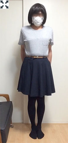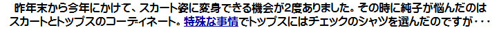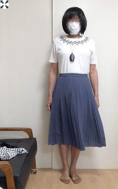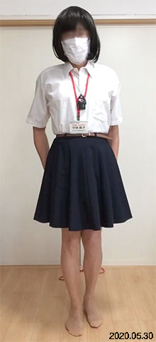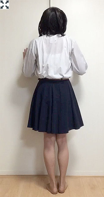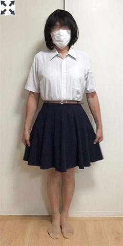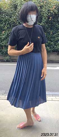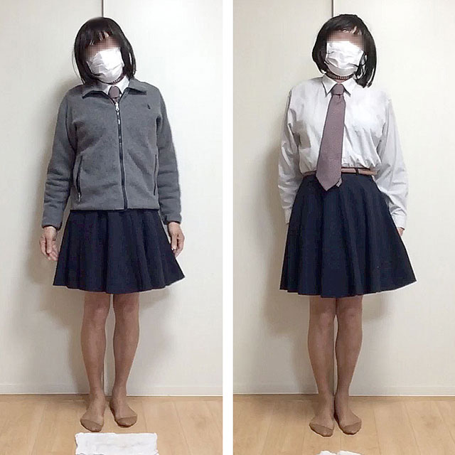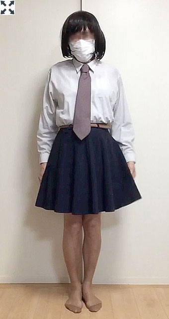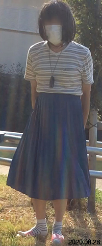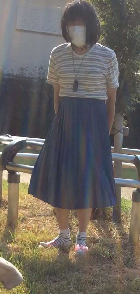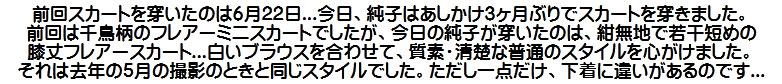 紺のフレアスカートに白のブラウス....これは2020年5月30日の純子と同じ服装です...