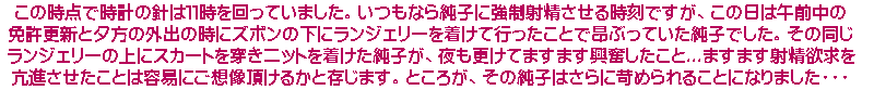 この日の純子には、スカート姿に変身した上で射精しないという選択肢は、正直、もうありませんでした...