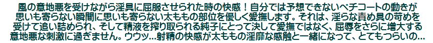 このバイブ、スカートの上でちょうど性器の先端に当たるのです!...射精の切なさに身体を捩ると、ちょうど性器にバイブが当たってとてもつらいの。ああ...もう許して...