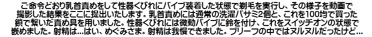 この拷問...乳首が鎖で引っ張られてとても痛い...その痛さが...苦痛が...性器にビンビン伝わるの・・・