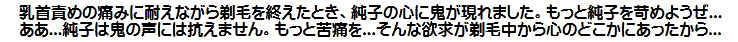 ご命令どおり乳首に責め具を付け、性器くびれにはバイブを装着した純子。このつらい格好で陰毛を剃っていきます。