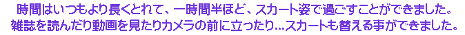 スカート姿に変身できるのがこれで最後というわけではないと信じているけど、今までと同じように楽しめるのは今日が最後...少し感傷的になっています。