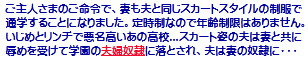 スカートの下にはペチコートを重ね、ストッキングをガーターベルトを吊っていますが、パンティは許されていない純子です。帰ったら厳しい折檻です...