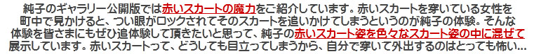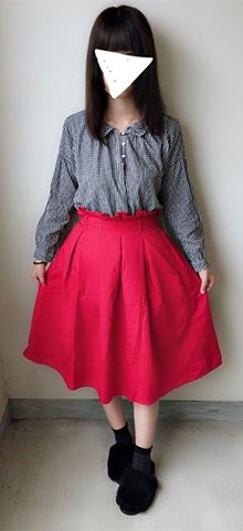 今年初めての撮影で純子が選んだのは赤いスカート...イラストの女性を真似てポーズを取ってみました。でも、ダメね...